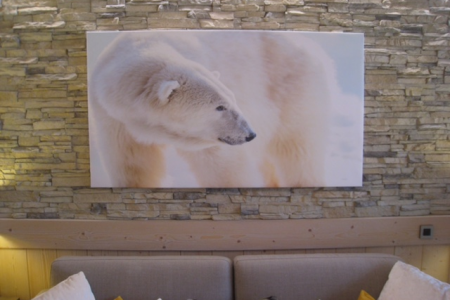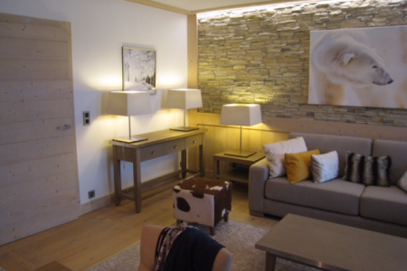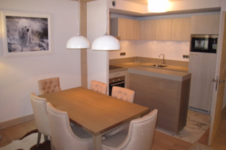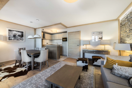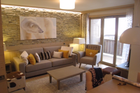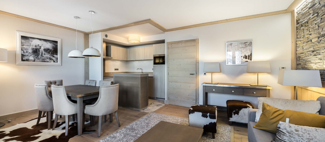 met eetplaats, salon en televisie.